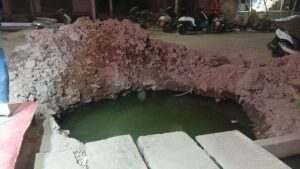 वही ठेकेदार द्वारा सड़क बीच में गड्ढा कर दिया गया जिसके अंदर अब नाली और पानी सहित नल का पानी जमा हो गया..जो फिलहाल मौत का कुआं बने हुए बिच सड़क पर बना हुआ है…